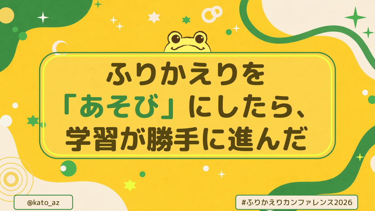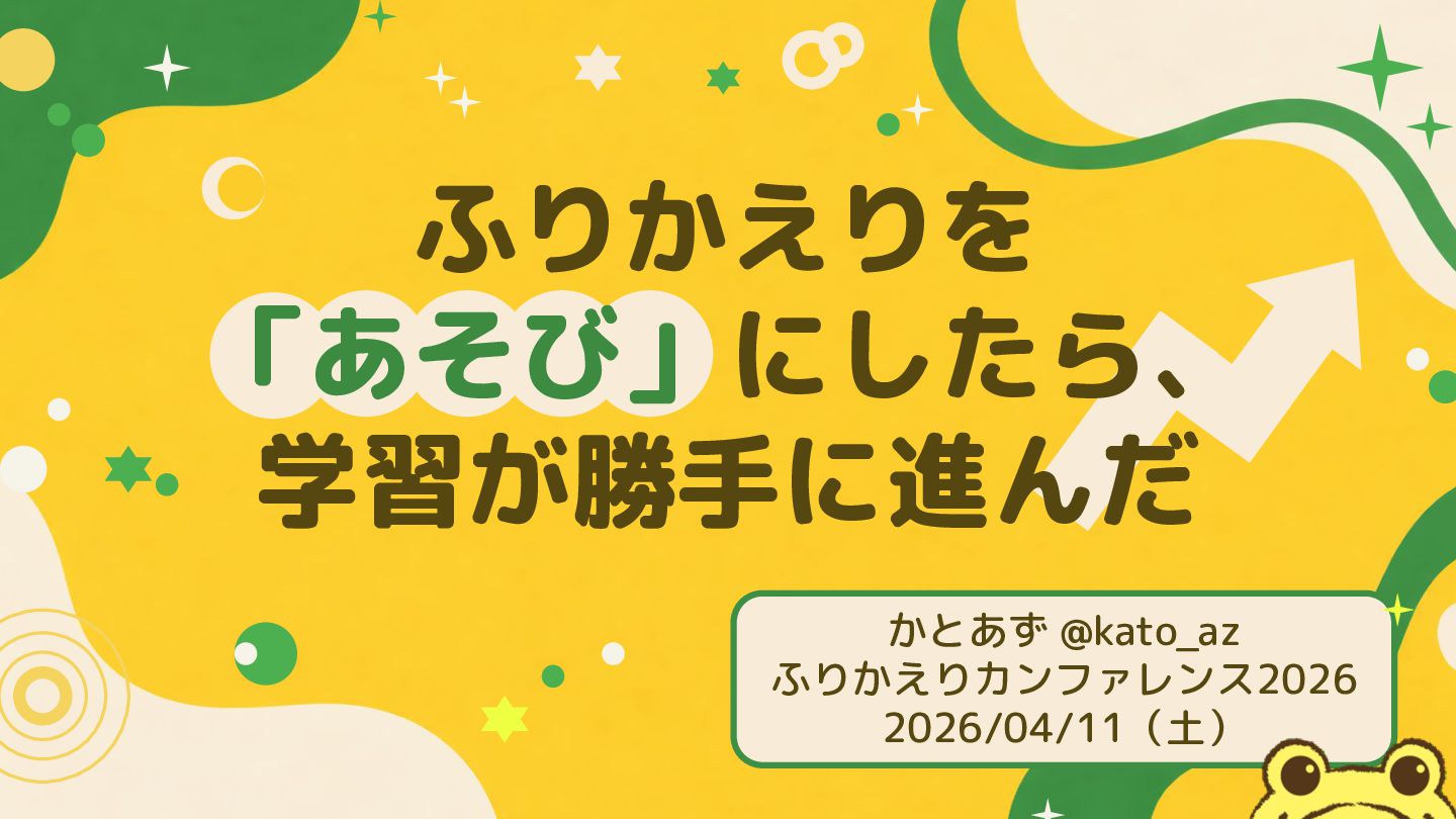 かとあず @kato_az ふりかえりカンファレンス2026 2026/04/11(土) ふりかえりを 「あそび」にしたら、 学習が勝手に進んだ
