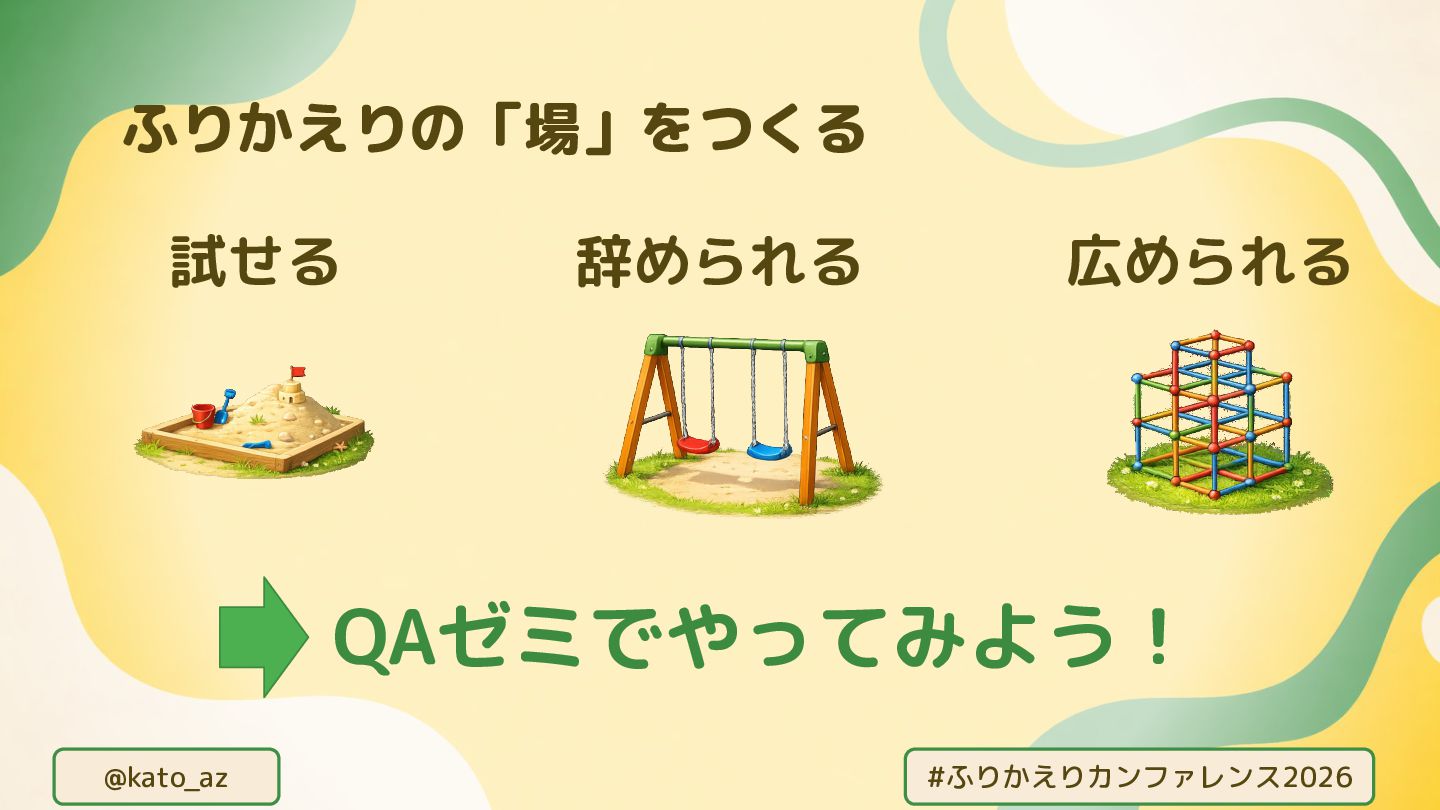 @kato_az #ふりかえりカンファレンス2026 ふりかえりの「場」をつくる 試せる 辞められる 広められる QAゼミでやってみよう!