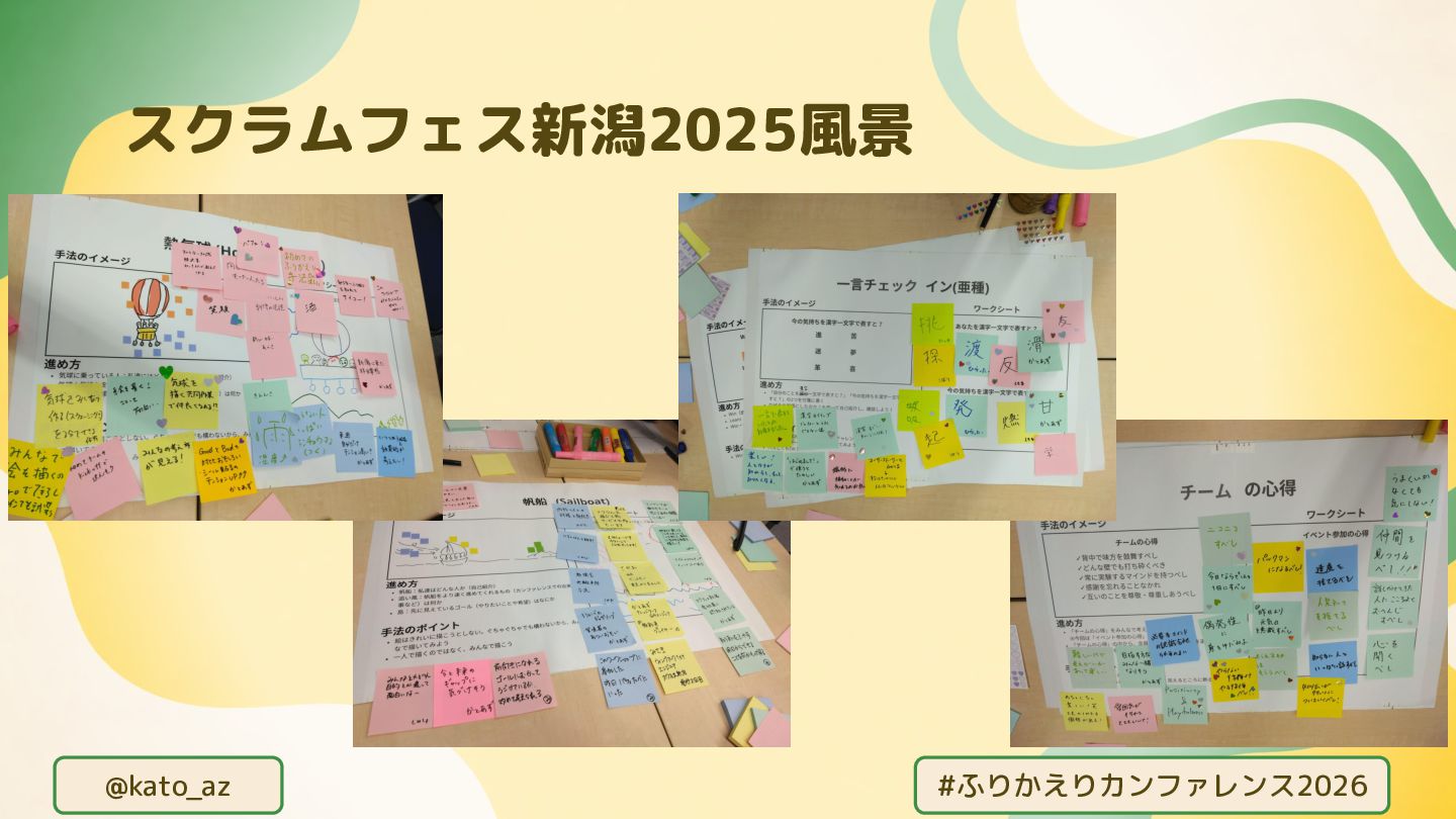 @kato_az #ふりかえりカンファレンス2026 スクラムフェス新潟2025風景