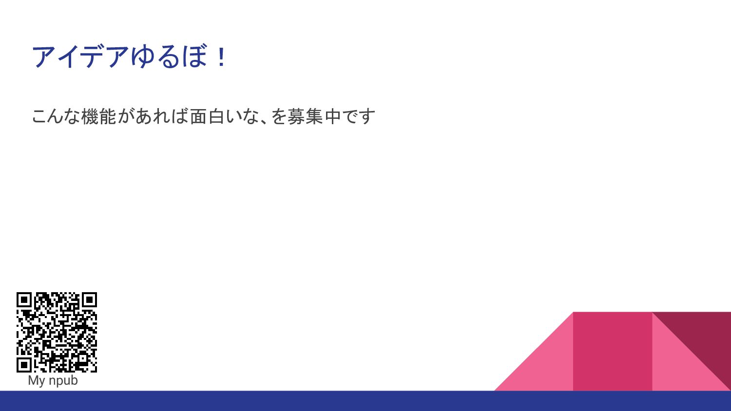 アイデアゆるぼ! こんな機能があれば面白いな、を募集中です My npub