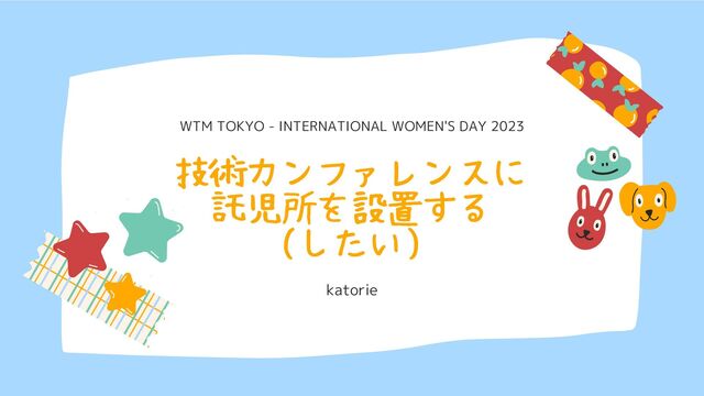 技術カンファレンスに 託児所を設置する (したい) katorie WTM TOKYO - INTERNATIONAL WOMEN'S DAY