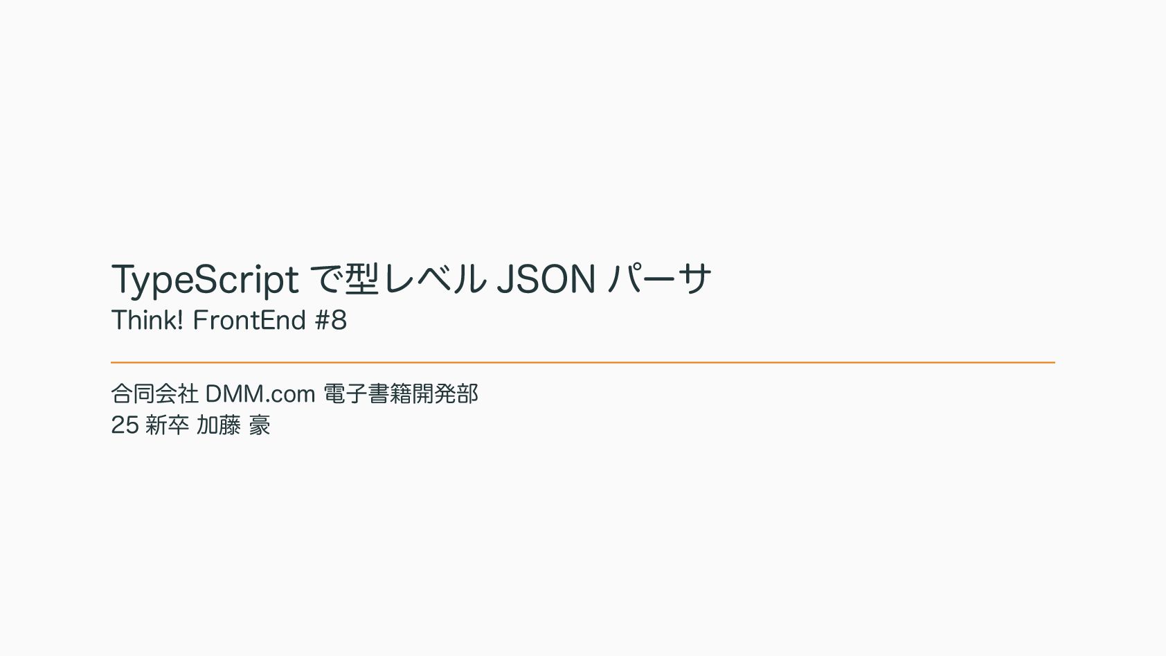 TypeScript で型レベル JSON パーサ Think! FrontEnd #8 合同会社 DMM.com 電子書籍開発部