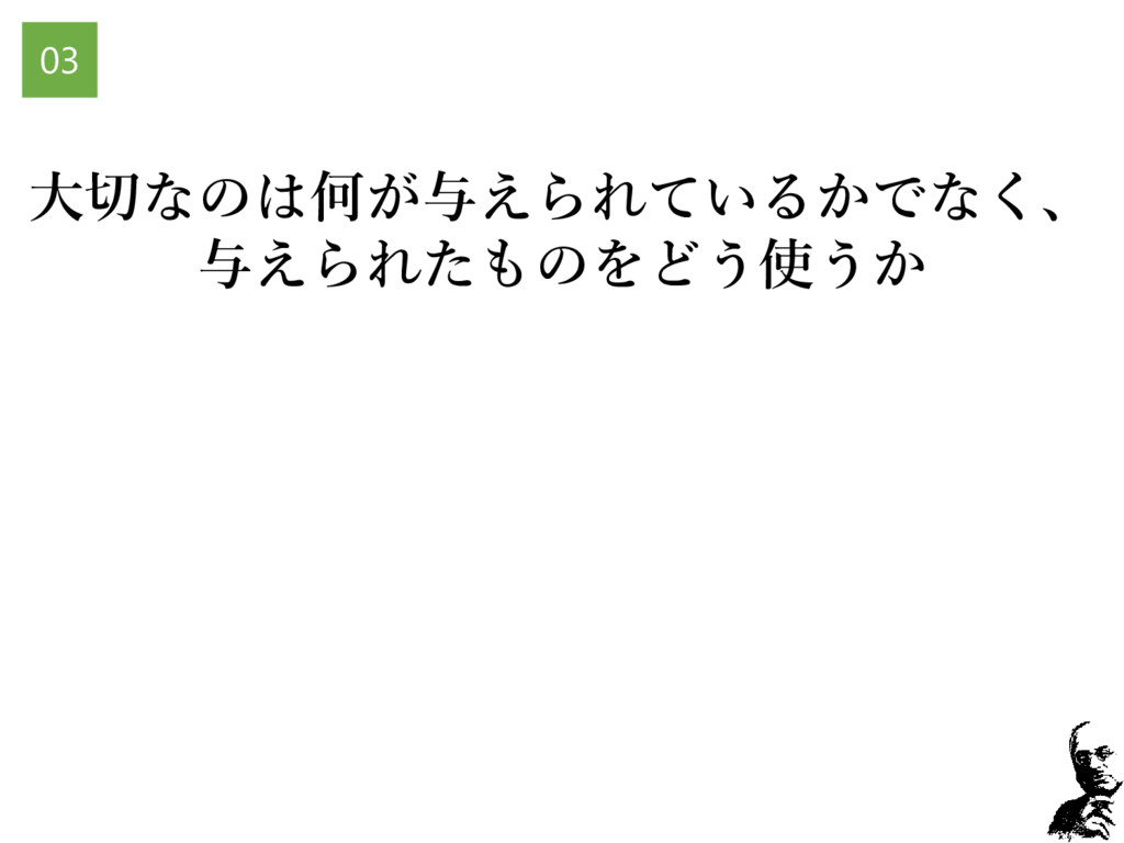 大切なのは何が与えられているかでなく、 与えられたものをどう使うか 03