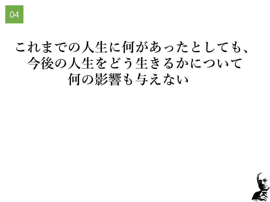 これまでの人生に何があったとしても、 今後の人生をどう生きるかについて 何の影響も与えない 04