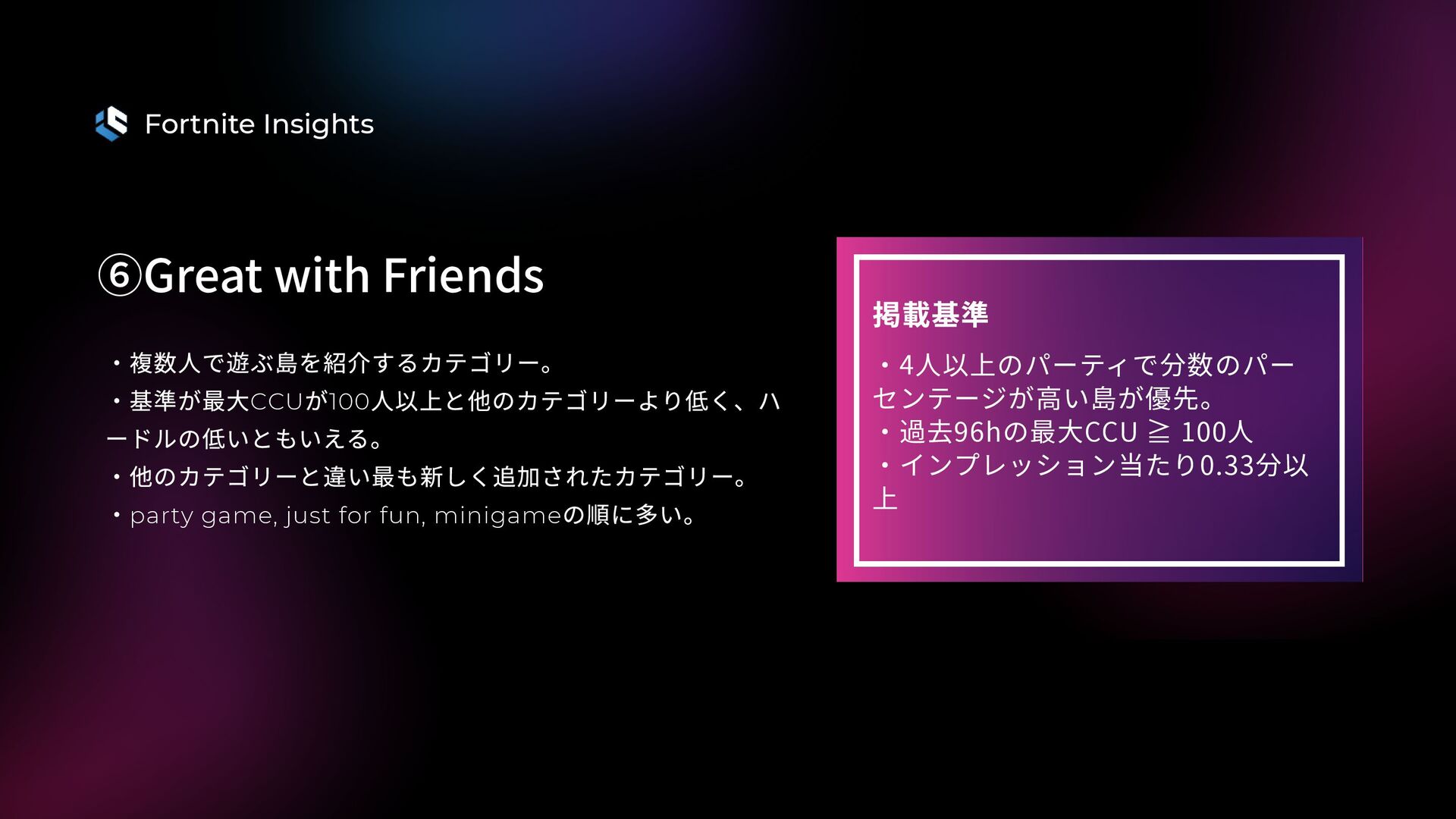 今回のトークイベントでは各カテゴリーの掲載基準、そしてその特徴と考えられるEpicの設計意図を解説します。