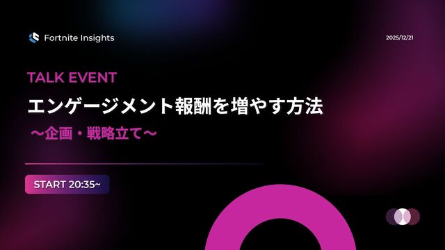 エンゲージメント報酬を増やす方法 TALK EVENT Fortnite Insights START 20:35~ START 20:35~ ~企画・戦略立て~
