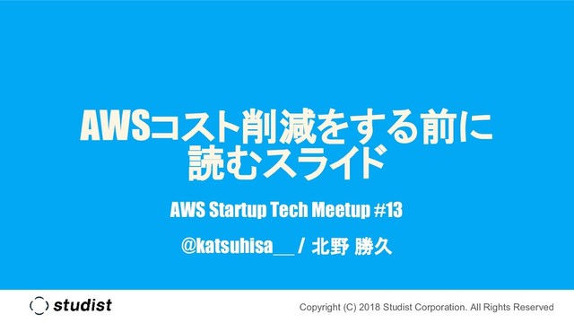 AWS Startup Tech Meetup #013 で発表した資料です。 AWS コスト削減をする前におさえておきたい考え方を整理しました。 https://awsstartuptechmeetuptokyo13.splashthat.com/