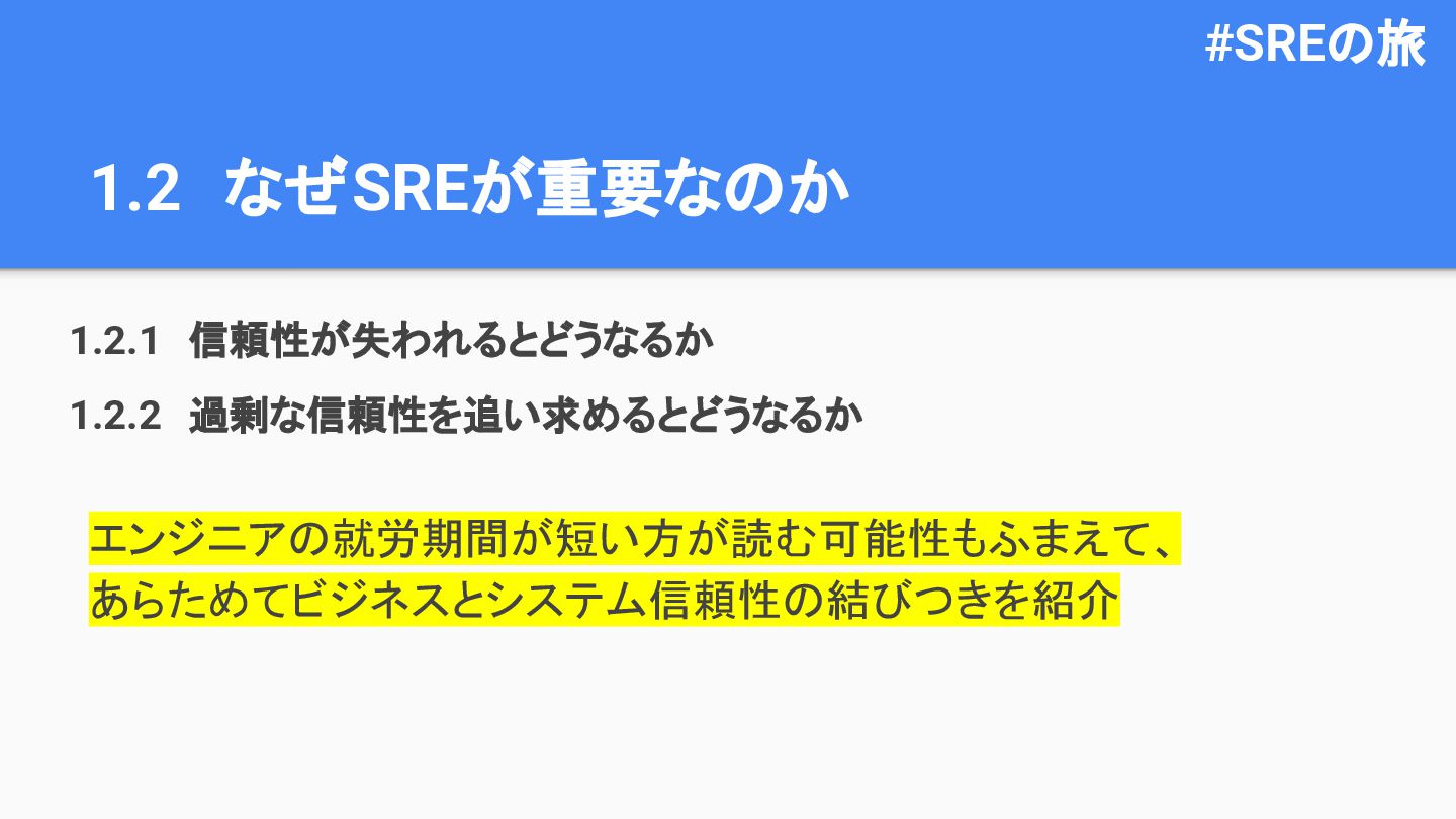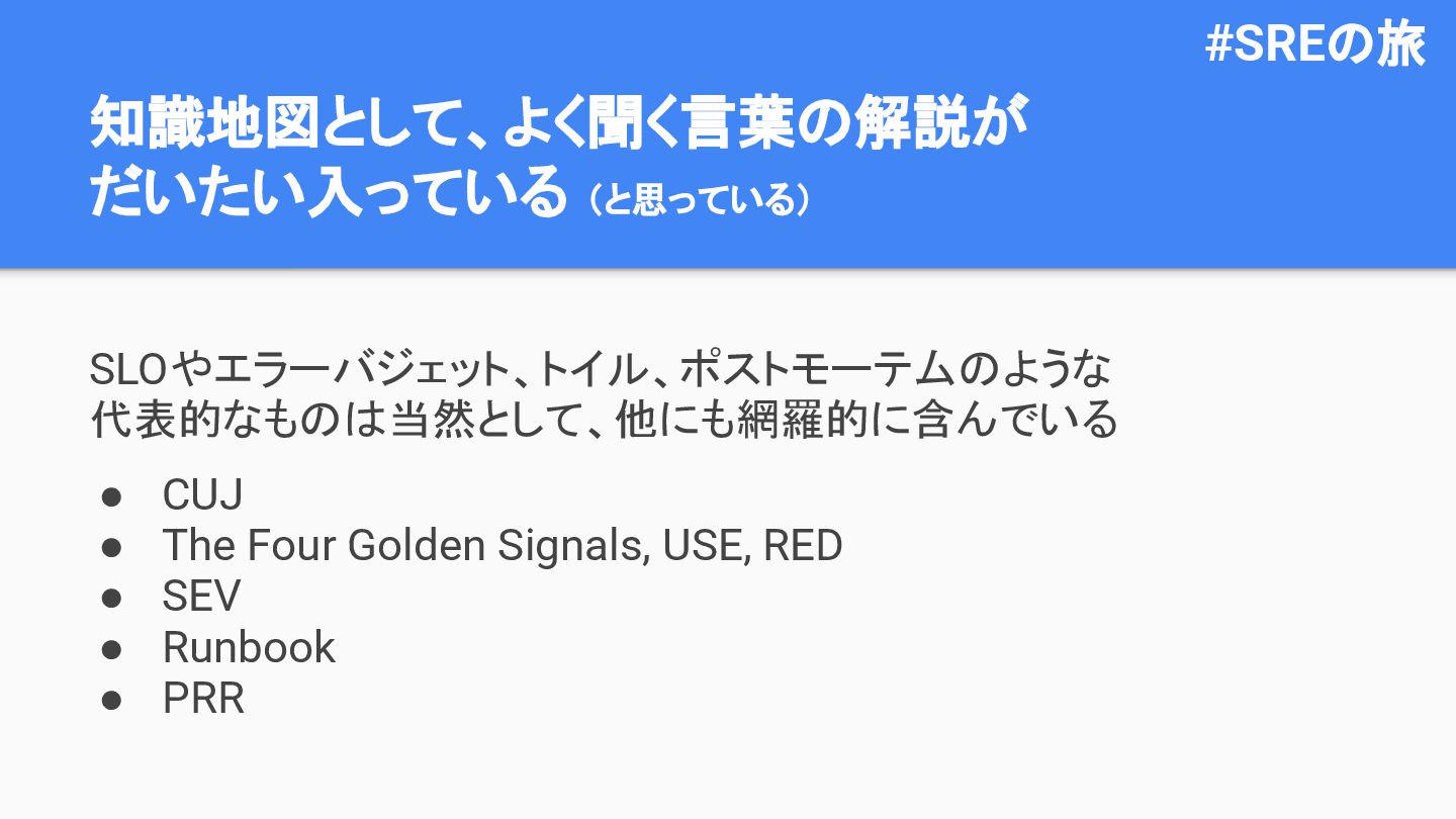 「 『SREの知識地図』の著者を招いてお送りするSREの旅〜Road 1 SREとは」で話したスライドです。 https://topotal.connpass.com/event/371996/