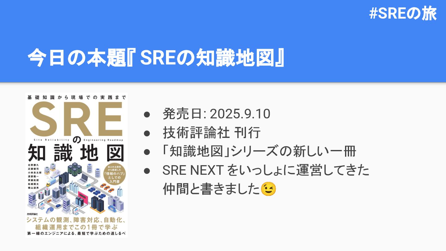 『SREの知識地図』の中身や推しポイントを紹介しています。 https://gihyo.jp/book/2025/978-4-297-15072-3