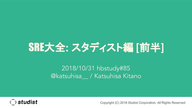 #hbstudy 85 「SRE大全 スタディスト編」で登壇した際の資料(前半)です。 後半の資料はこちら。 https://speakerdeck.com/katsuhisa91/sre-taizen-studist-2