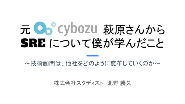 Cybozu Tech Conference 2017( https://cybozu.connpass.com/event/70374/ )にて発表した資料です。 また、この記事の内容は、SRE Advent Calender 12/2 にも投稿しております。( https://qiita.com/katsuhisa__/items/f1cd06e0705d2045a730 )