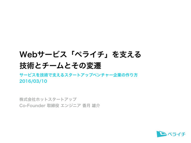 8FCαʔϏεʮϖϥΠνʯΛࢧ͑Δ ٕज़ͱνʔϜͱͦͷมભ αʔϏεΛٕज़Ͱࢧ͑ΔελʔτΞοϓϕϯνϟʔاۀͷ࡞Γํ גࣜձࣾϗοτελʔτΞοϓ $P'PVOEFSऔకΤϯδχΞ݄߳༤հ