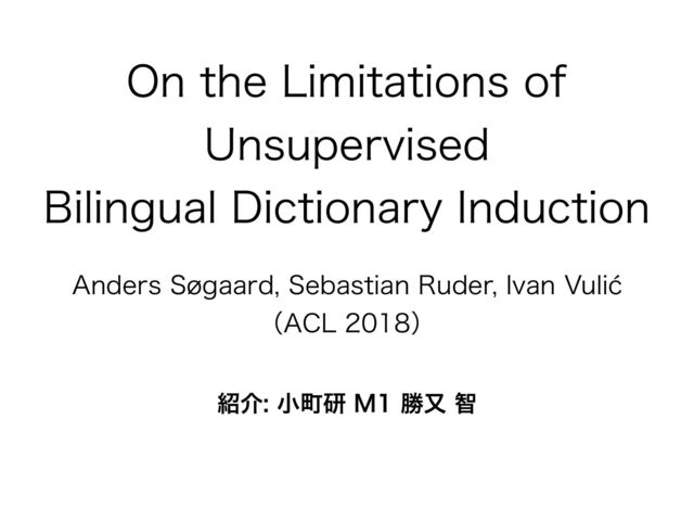 w ͜ͷจ$POOFBVFUBM͕ͲͷΑ͏ͳঢ়گͰ্ख͘ߦ͘ͷ͔ Λੳ͍ͯ͠Δ w $POOFBVFUBMͷख๏ʹରͯ͠XFBLTVQFSWJTJPOTJHOBMΛೖ Εͯͪΐͬͱਫ਼Λ্͕Δ͜ͱΛࣔͨ͠ w ̎ͭͷNPOPMJOHVBMXPSEFNCFEEJOH͔Βग़དྷ্͕Δ CJMJOHVBMEJDUJPOBSZͷੑೳΛධՁ͢ΔNFUSJDΛఏҊ !2 8PSE5SBOTMBUJPO8JUIPVU1BSBMMFM%BUB$POOFBVFUBM *$-3 6OTVQFSWJTFE.BDIJOF5SBOTMBUJPO6TJOH.POPMJOHVBM$PSQPSB0OMZ-BNQMFFUBM *$-3