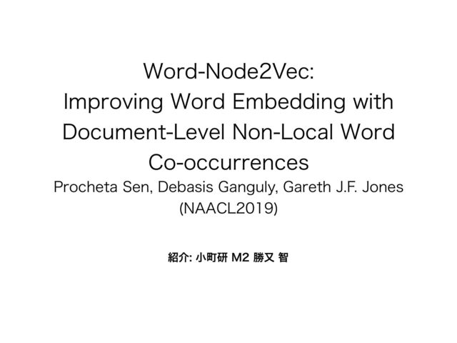 - Word-Node2Vec: Improving Word Embedding with Document-Level Non-Local Word Co-occurrences. Sen et al., NAACL2019 を紹介
