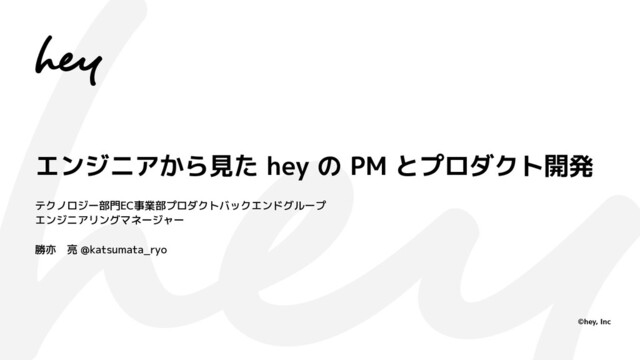 ©hey, Inc テクノロジー部門EC事業部プロダクトバックエンドグループ エンジニアリングマネージャー 勝亦 亮 @katsumata_ryo エンジニアから見た hey の PM