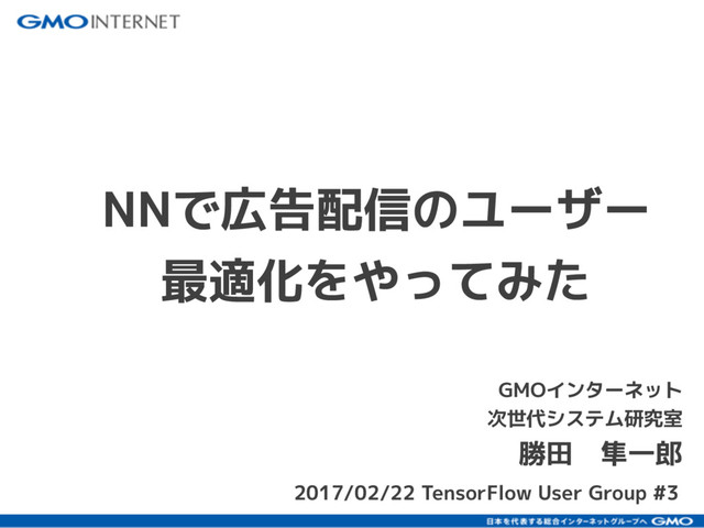 TensorFlow User Group (TFUG) のMeetup#3の発表スライドです。数千万人ユーザー規模のアドネットワークAkaNeの広告配信の最適化モデルを、ニューラルネットで構築した事例を紹介します。