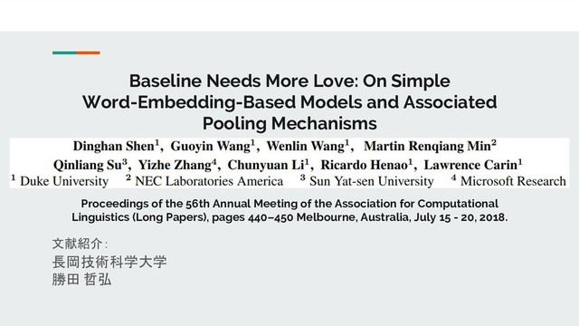 Pooling Mechanisms Proceedings of the 56th Annual Meeting of the Association for Computational Linguistics (Long Papers), pages 440–450 Melbourne, Australia, July 15 - 20, 2018. 文献紹介: 長岡技術科学大学 勝田 哲弘