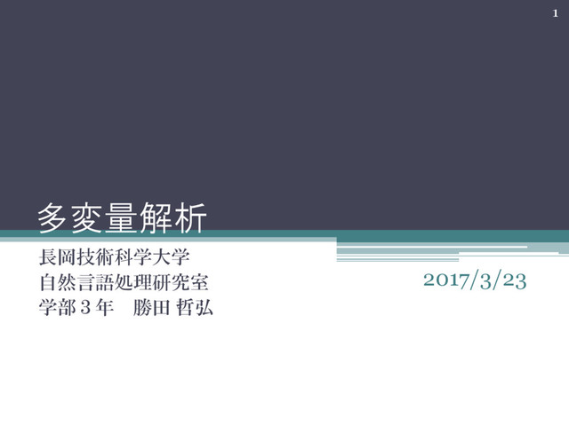 多変量解析 長岡技術科学大学 自然言語処理研究室 学部3年 勝田 哲弘 1 2017/3/23