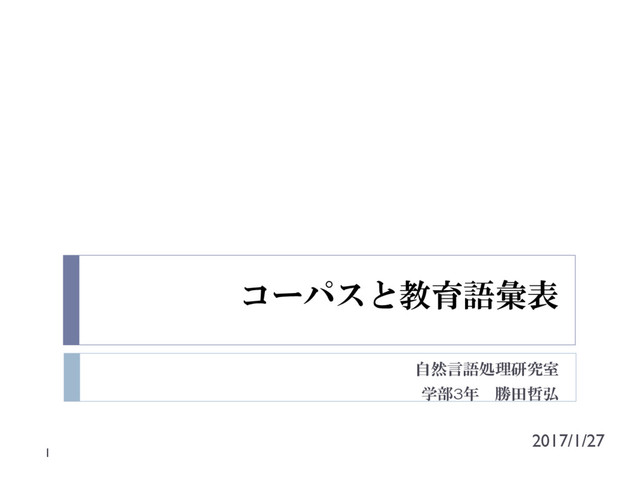 コーパスと教育語彙表 自然言語処理研究室 学部3年 勝田哲弘 1 2017/1/27