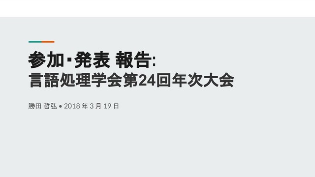 参加・発表 報告: 言語処理学会第24回年次大会 勝田 哲弘 • 2018 年 3 月