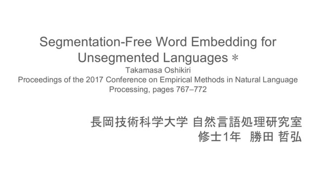 Segmentation-Free Word Embedding for Unsegmented Languages ∗ Takamasa Oshikiri Proceedings