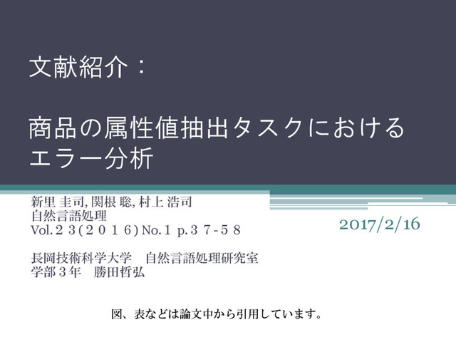 Vol.23(2016) No.1 p.37-58 長岡技術科学大学 自然言語処理研究室 学部3年 勝田哲弘 2017/2/16 図、表などは論文中から引用しています。