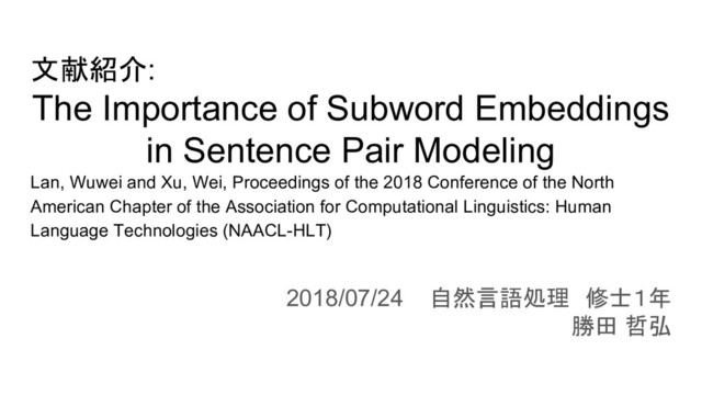 et al., 2016; He and Lin, 2016; Liu et al., 2016; Tomar et al., 2017; Wang et al., 2017; Shen et al., 2017, etc) • contextualized word vectors generated via Bi-LSTM, CNN, or attention • soft or hard word alignment and interactions across sentences • and the output classification layer. 2つの文の間の意味関係は主にチャンクの対応関係に依存する(Agirre et al., 2016) 5
