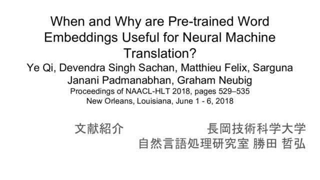in standard translation systems (Neishi et al., 2017; Artetxe et al., 2017) • as a method for learning translation lexicons in an entirely unsupervised manner (Conneau et al., 2017; Gangi and Federico, 2017) これらはNMTに適切に組み込めばBLEUを向上させる いつ、なぜ、性能が向上するのかが明確ではない 2