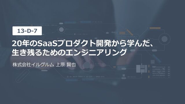 20年のSaaSプロダクト開発から学んだ、 生き残るためのエンジニアリング 13-D-7 株式会社イルグルム 上原 賢也