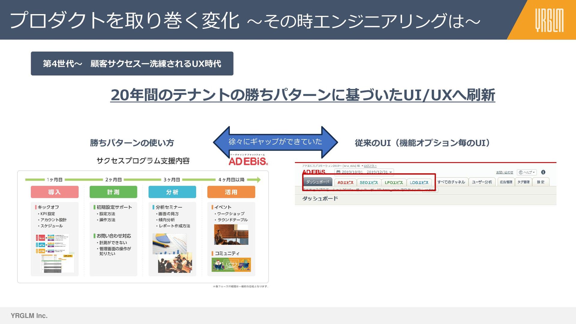 YRGLM Inc. プロダクトを取り巻く変化 ~その時エンジニアリングは~ 第4世代~ 顧客サクセスー洗練されるUX時代