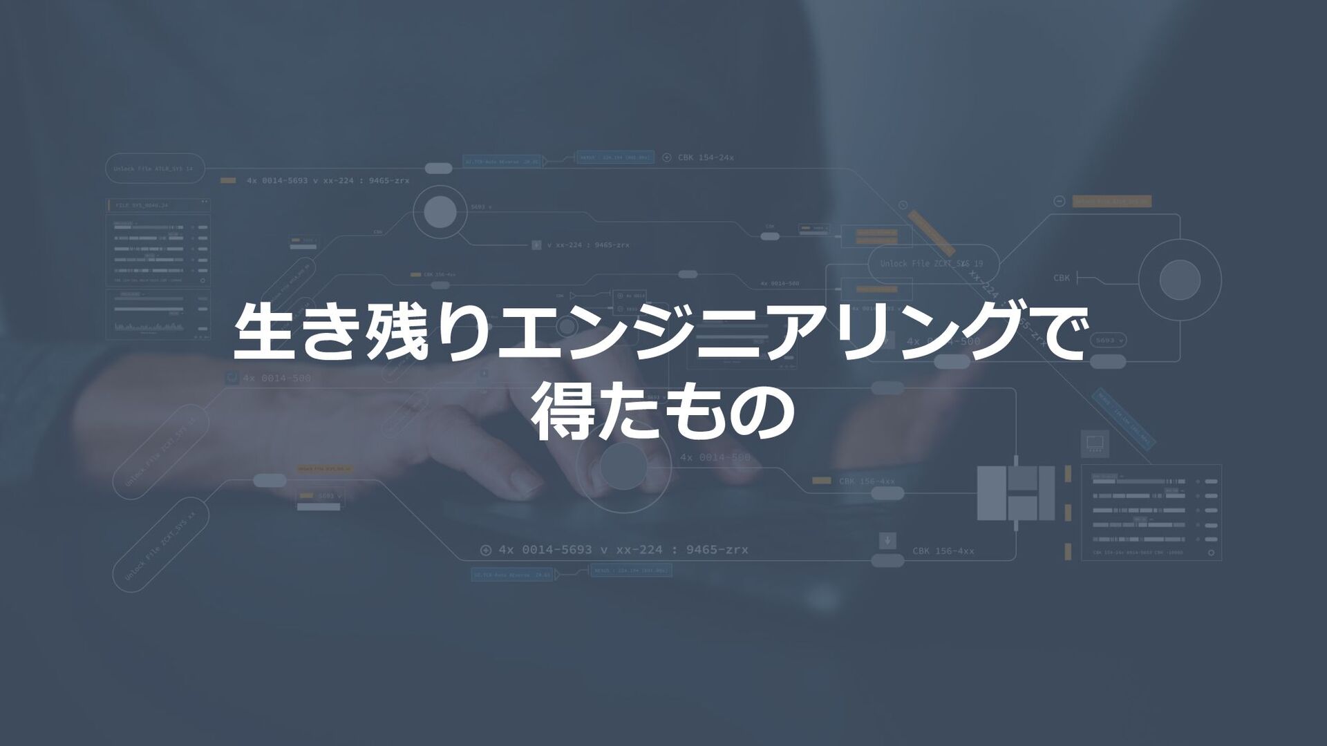 YRGLM Inc. 生き残りエンジニアリングで得たもの • システムライフサイクルを最後まで見届けられる • 10年とかいう単位で振り返りができる • 前線で変化と戦ってると結構経験値積める
