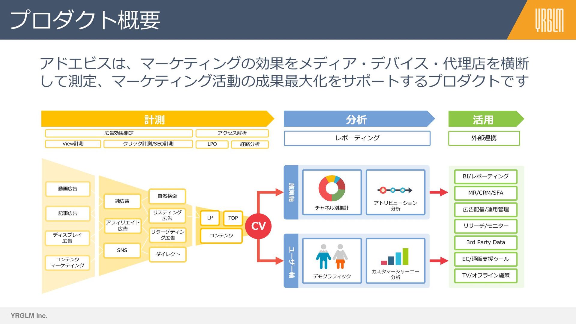 YRGLM Inc. 計測 広告効果測定 アクセス解析 View計測 LPO クリック計測/SEO計測 経路分析 動画広告