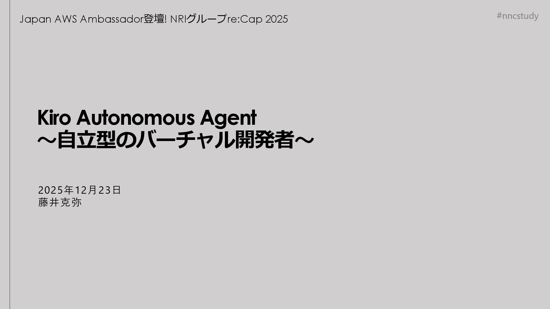 #nncstudy Kiro Autonomous Agent ~自立型のバーチャル開発者~ Japan AWS Ambassador登壇! NRIグループre:Cap 2025