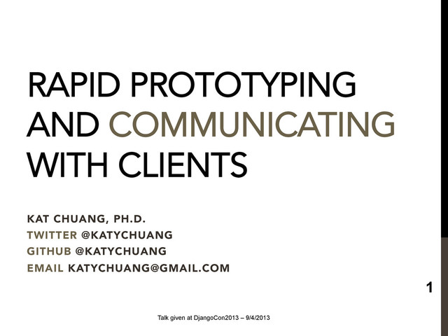 This talk will focus on the conversations around rapid prototyping. Miscommunication between developers and clients can occur because of different perspectives and work styles. In this talk I'll introduce interaction design concepts and templating with Django to show how easy it is to set up a minimally viable UI and explain the value in letting users feel that they have creative control.