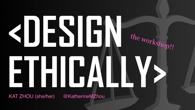 understand how you can redesign the design process 2. Understand how power affects the tech and design industries 3. Apply <Design Ethically> methodology to a product 4. Explore ways to advocate within tech