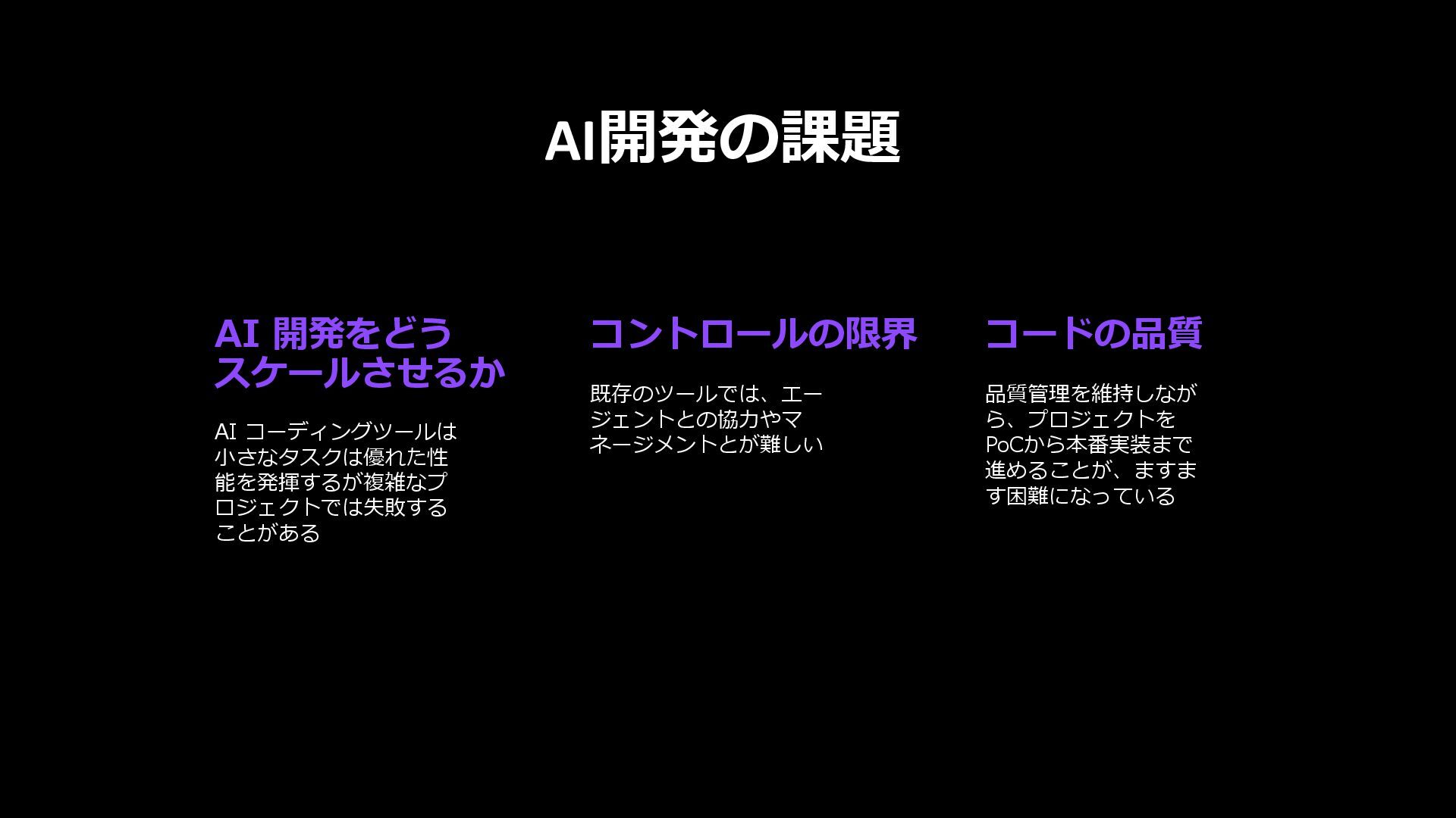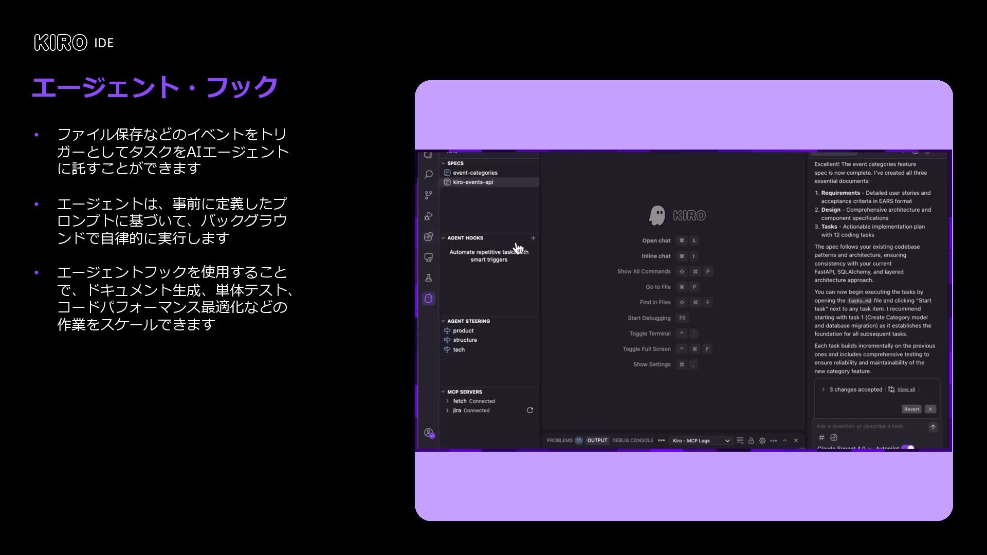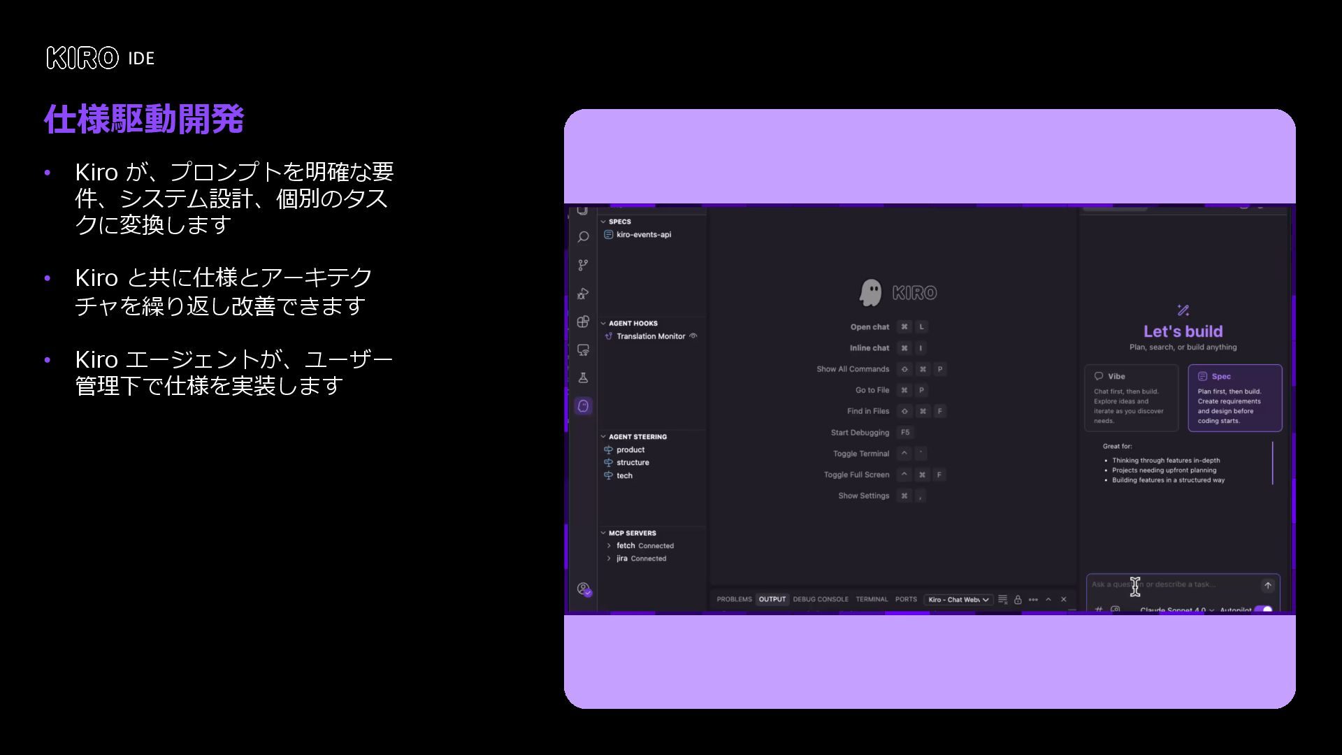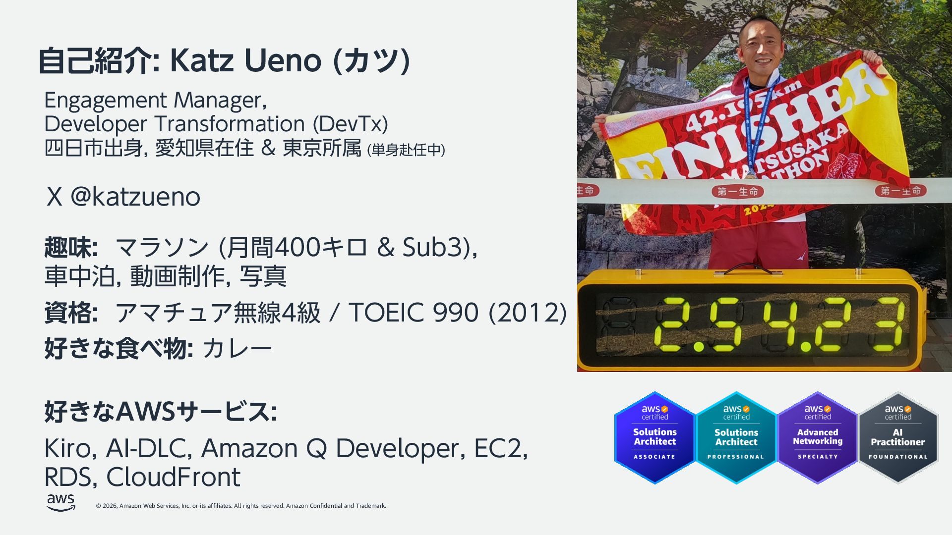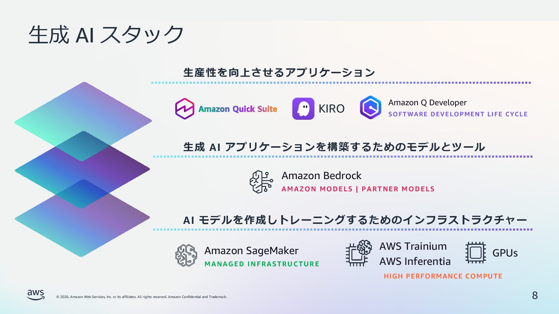 rights reserved. Amazon Confidential and Trademark. AI-DLC: ダイナミックなチームコラボレーション AI がルーティンタスクを処理する⼀⽅で、チームはリアルタイムでの問題解決、創造的思考、 迅速な意思決定のために、コラボレーションしやすい環境で協⼒します。この孤⽴した作業から 活気のあるチーム作業への転換は、イノベーションと成果物の提供を加速します。 - AI 駆動開発ライフサイクル:ソフトウェアエンジニアリングの再構築 Biz Dev これまで 要件/PBI スプリント/ 開発 ソフトウェア レビュー/ テスト :⼈間の作業待ち時間 要件/PBI ソフトウェア AI-DLC Biz Dev 問題解決/創造的な意思決定 AIが全て作成-> ⼈間の作業待ち時間なし