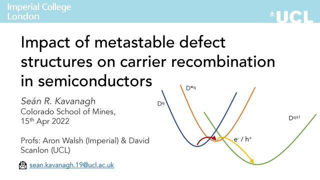 Presentation given to the 3D Materials Lab group in the Colorado School of Mines, led by Prashun Gorai https://www.prashungorai.org/, focused on our recent publication Impact of metastable defect structures on carrier recombination in semiconductors (https://doi.org/10.1039/D2FD00043A)