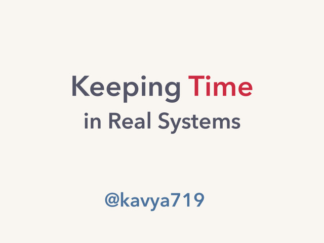A person with two watches is never sure.” - Segal’s Law, reworded. @kavya719 speakerdeck.com/kavya719/keeping-time-in-real-systems Special thanks to Eben Freeman for reading drafts of this.