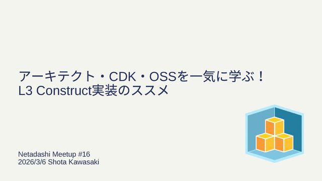 Netadashi Meetup #16 2026/3/6 Shota Kawasaki アーキテクト・CDK ・OSS を⼀気に学ぶ! L3