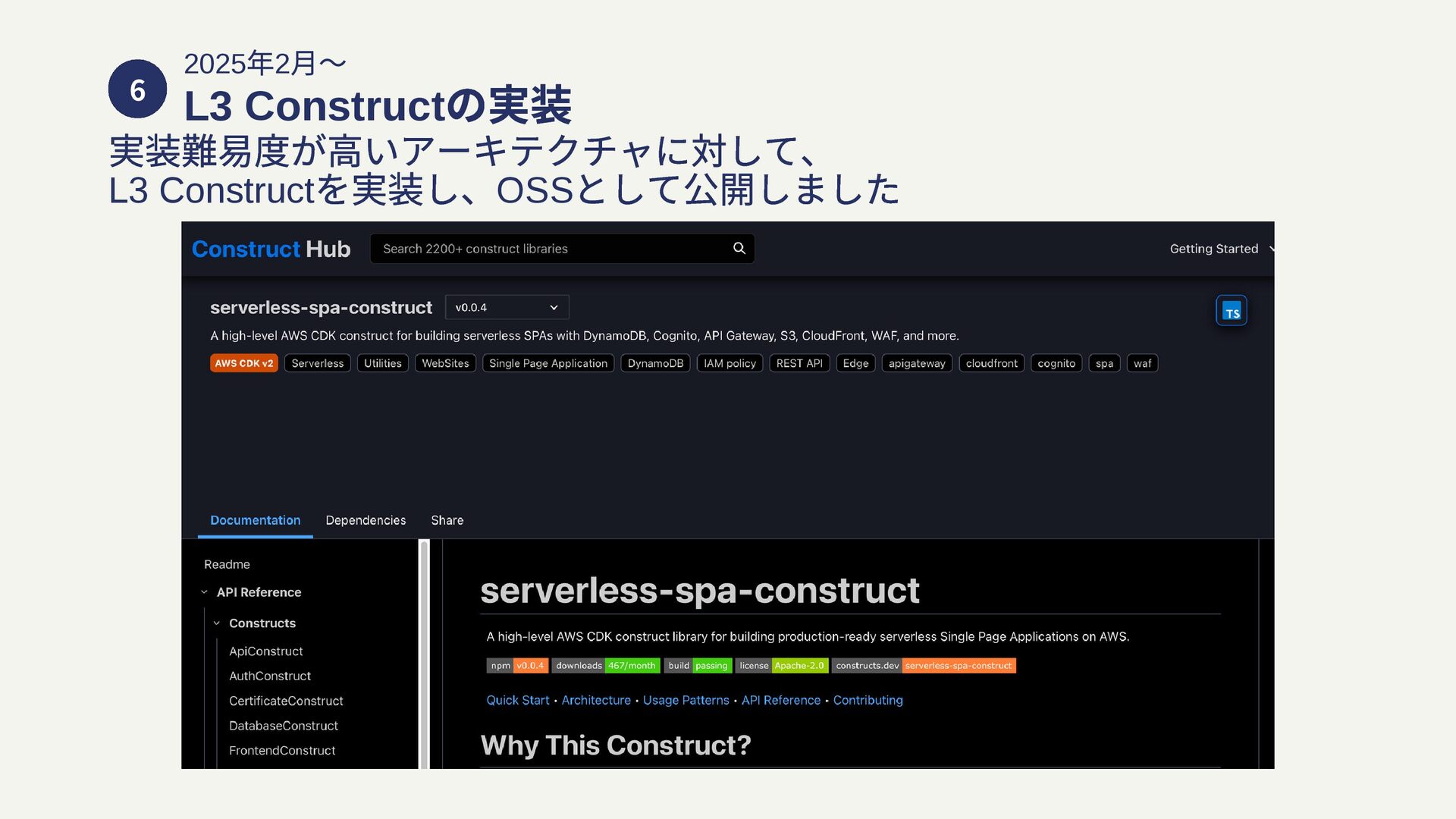 6 2025 年2 月〜 L3 Construct の実装 実装難易度が高いアーキテクチャに対して、 L3 Construct