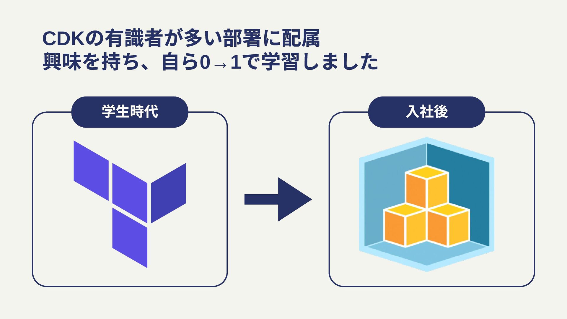 学生時代 入社後 CDK の有識者が多い部署に配属 興味を持ち、自ら0→1 で学習しました