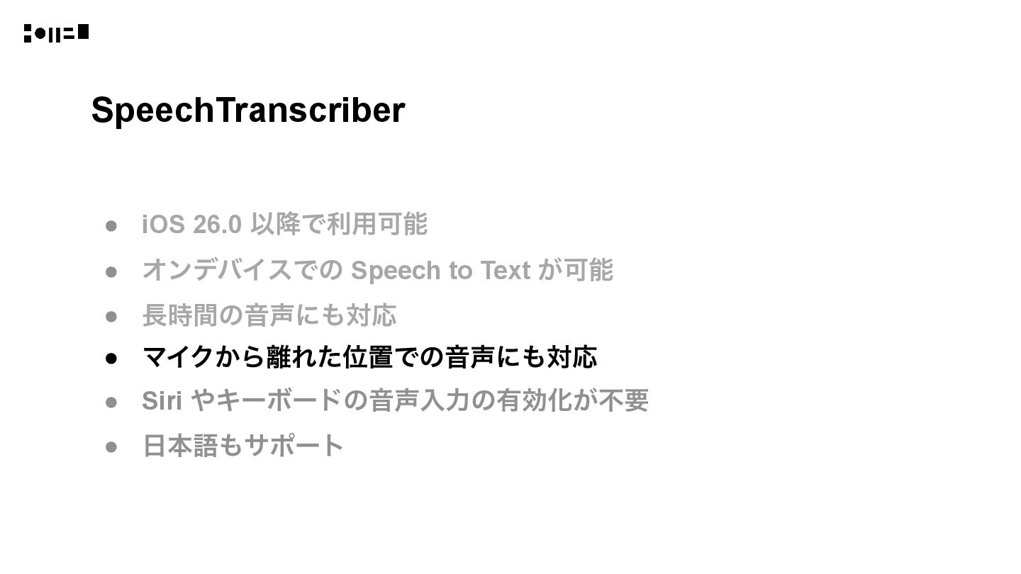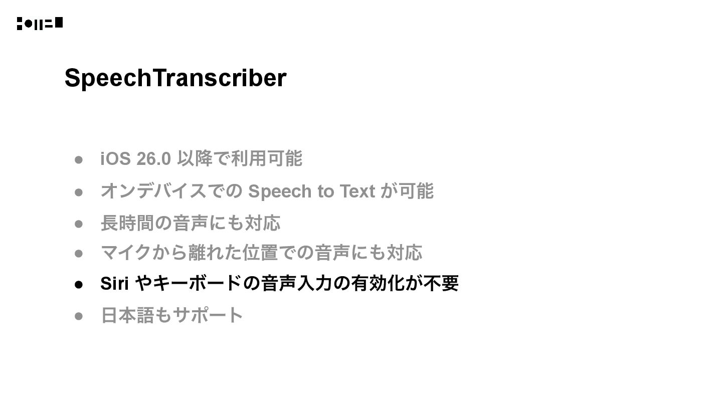 SpeechTranscriber • iOS 26.0 Ҏ߱Ͱར༻Մೳ • ΦϯσόΠεͰͷ Speech to Text