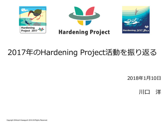 Copyright ©Hiroshi Kawaguchi 2018 All Rights Reserved. 2017年のHardening Project活動を振り返る 2018年1月10日