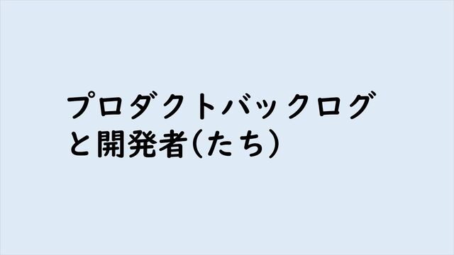 プロダクトバックログ 優先順位付けされた 機能リスト。 開発者たちが見積もる。 納期は決められない。