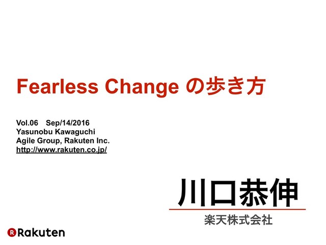Fearless Change ͷา͖ํ Vol.06ɹSep/14/2016 Yasunobu Kawaguchi Agile Group, Rakuten Inc.
