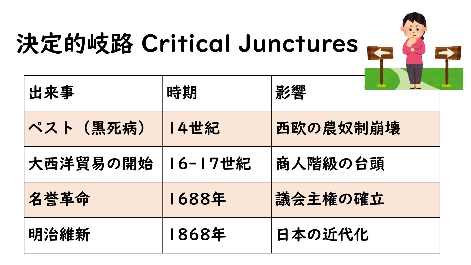 ・決定的岐路(Critical Junctures)— 名誉革命、明治維新、豊田佐吉