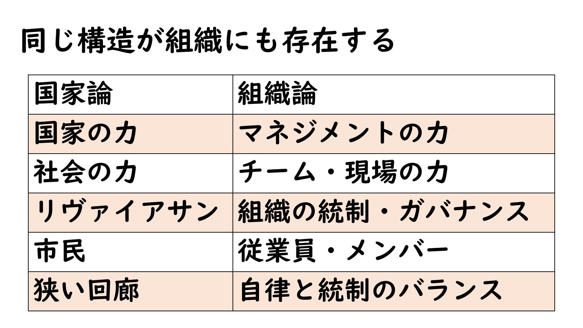 ・狭い回廊と三つのリヴァイアサン — 組織への読み替え