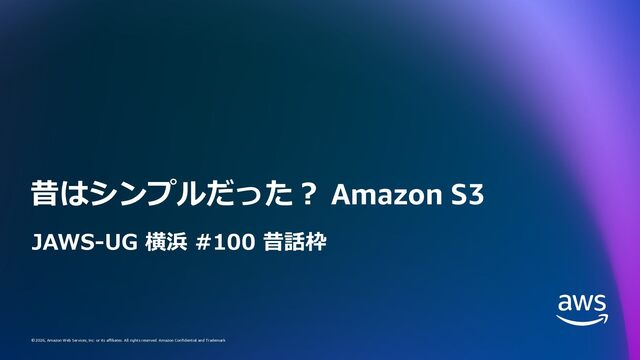 rights reserved. Amazon Confidential and Trademark. © 2026, Amazon Web Services, Inc. or its affiliates. All rights reserved. Amazon Confidential and Trademark. 昔はシンプルだった︖ Amazon S3 JAWS-UG 横浜 #100 昔話枠