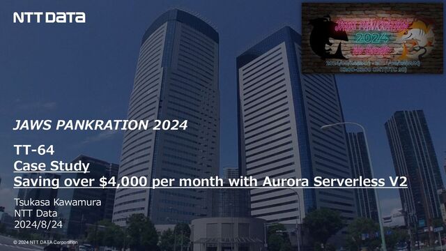 Provisioned Serverless V2 vCPU Memory CPU:16Core Memory:128GiB CPU:16Core Memory:128GiB Min:2ACU(4GiB) Max:64ACU(128 GiB) Instance Type - r5.4xlarge Serverless V2 Pricing Model - OnDemand - Node 4(8)※MultiAZ 4(8)※MultiAZ 4(8)※MultiAZ Multi-AZ - True True Cost(ap- northeast-1) - 16,352.00 USD/Month 4,000~8,000 USD/Month ※Actual value 0 2000 4000 6000 8000 10000 12000 14000 16000 18000 Cost Saving Provisioned Serverless V2 Reduced Over 4,000USD/Month • Initially assumed to use r5.4xlarge instances because it is very close to On-premise instances. • We found that there is a lot of unpredictable load based on the demand for on-premise use, the need to adhere to a defined response time for the maximum request expected, and that the load varies significantly by time. • Our choice to use Aurora allowed us to scale flexibly and saved us about 4,000USD/Month in unnecessary costs.