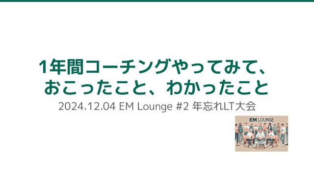 1年間コーチングやってみて、 おこったこと、わかったこと 2024.12.04 EM Lounge #2 年忘れLT大会